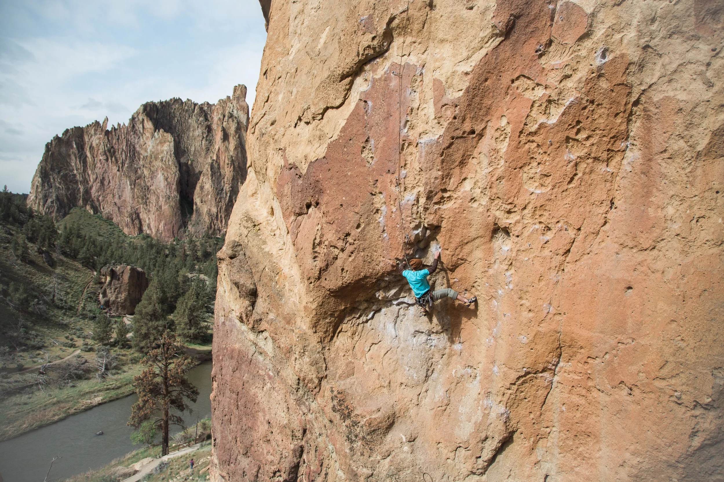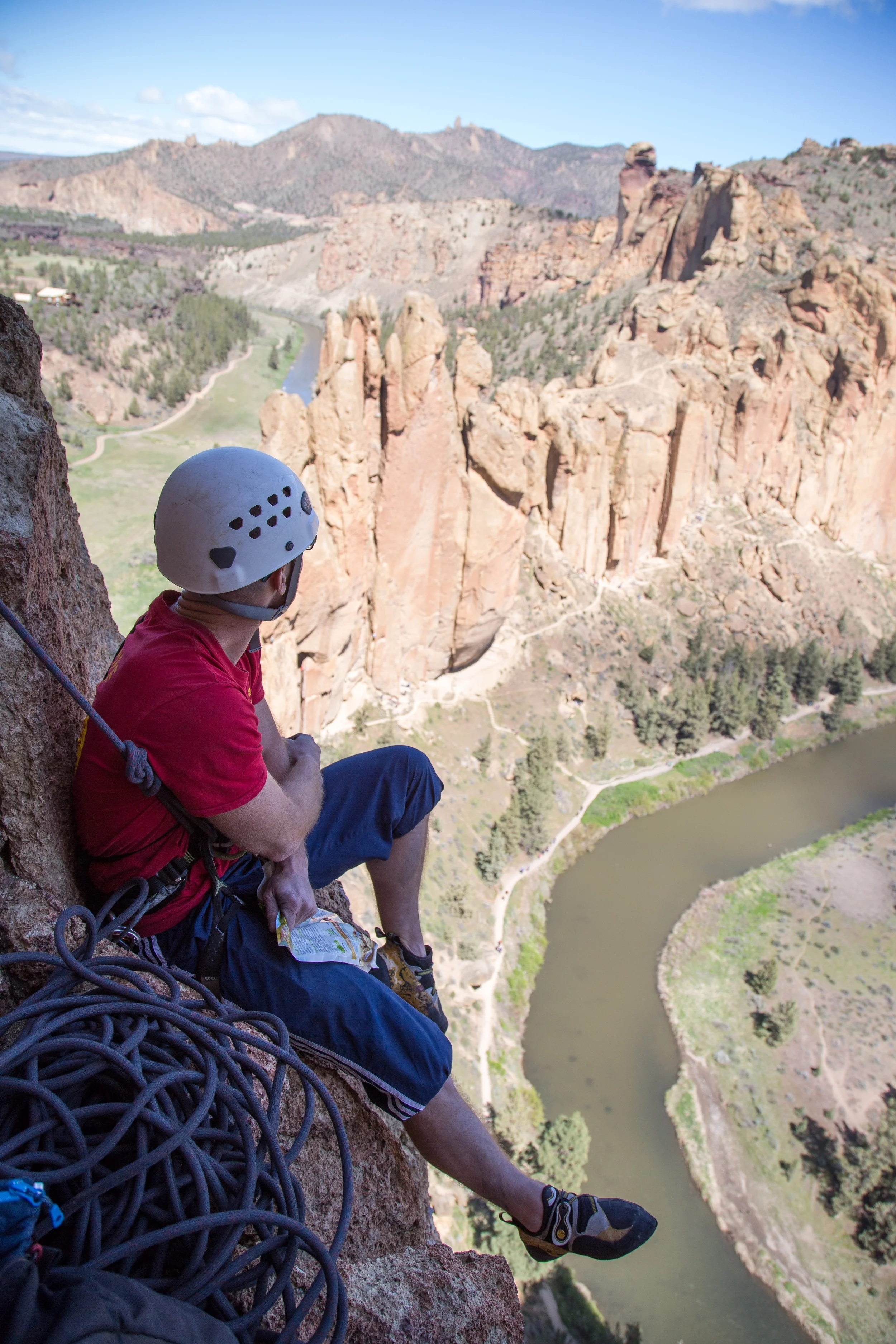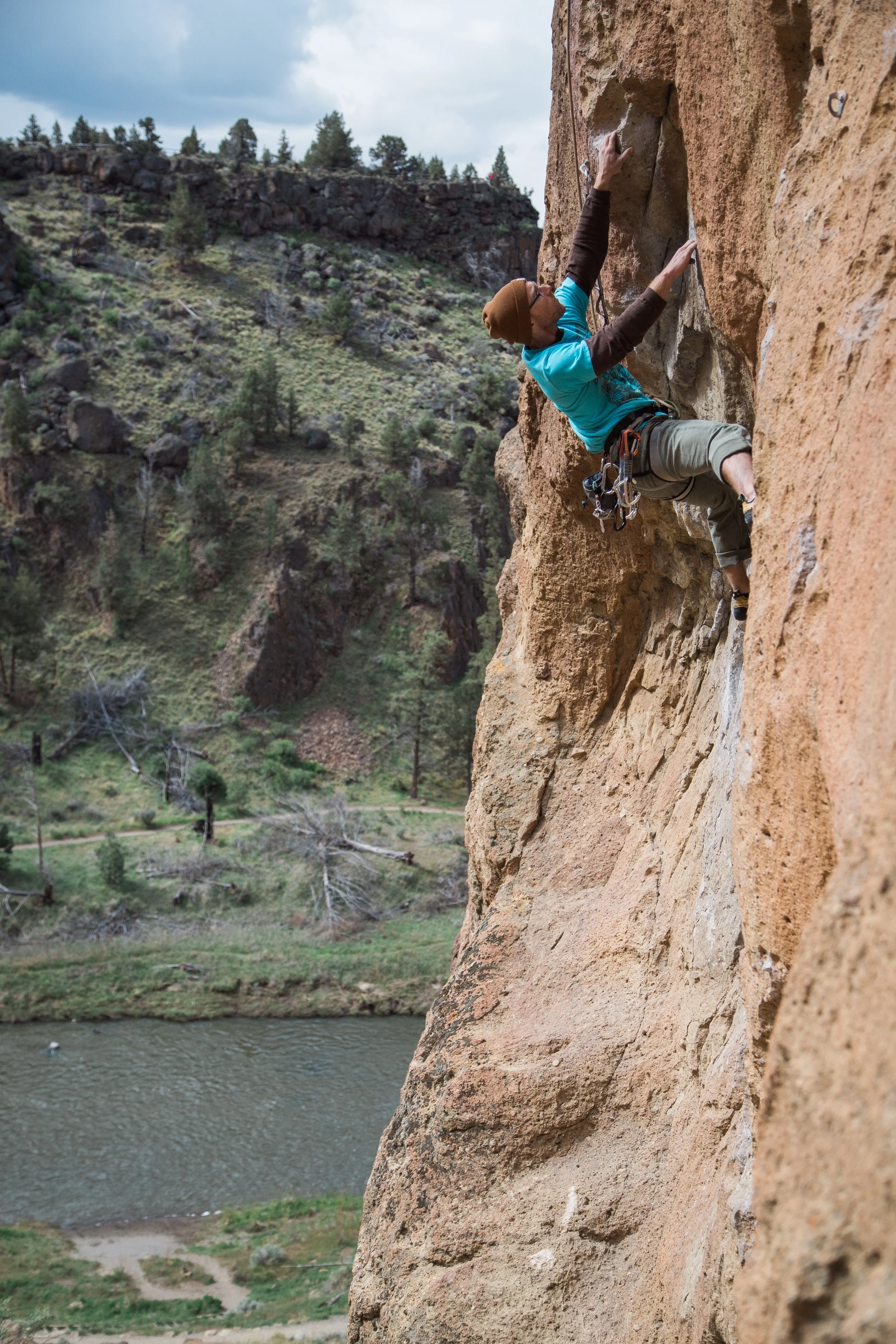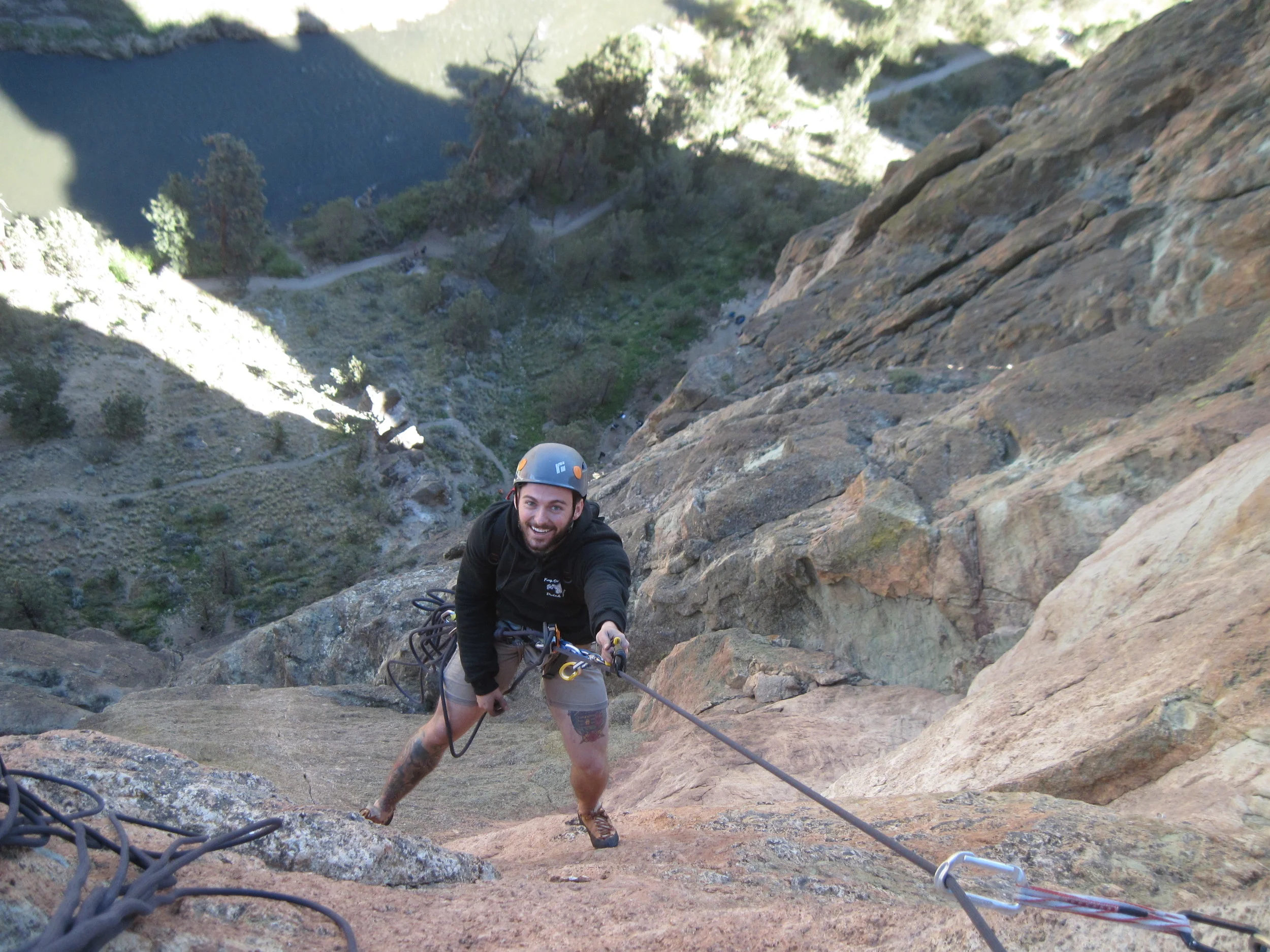 This whole trip to Smith Rock was about capturing one picture: the picture on the cover of the Smith Rock climbing guide book. The more I climb these days the more I want to capture the experiences of being on the rock. I want people to feel the exposure high above the ground, to grimace with me in the finger cracks, feel the awe of beautiful scenery, and share in triumph at the top of the mountain.