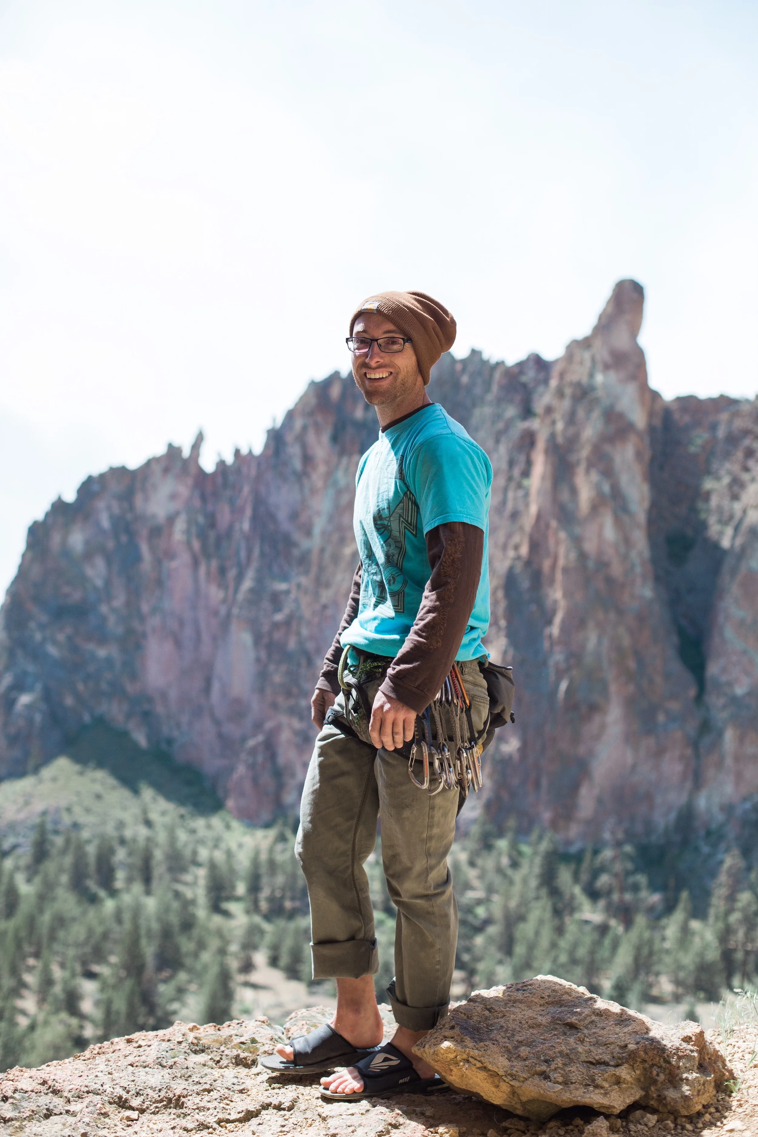 Before I knew it, the rack was biting into my shoulder, the metal was clinking against my thigh, and I was leaving the ground with thunderous excitement. The sun was basking us in power. As I looked up at the monolithic rock towering above us, I could not wait to be a speck on the exposed face high high above.